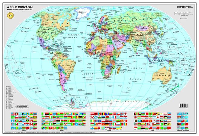 Kaparós Világtérkép, 84x57 cm, STIEFEL, A Föld országai, arany bevonat